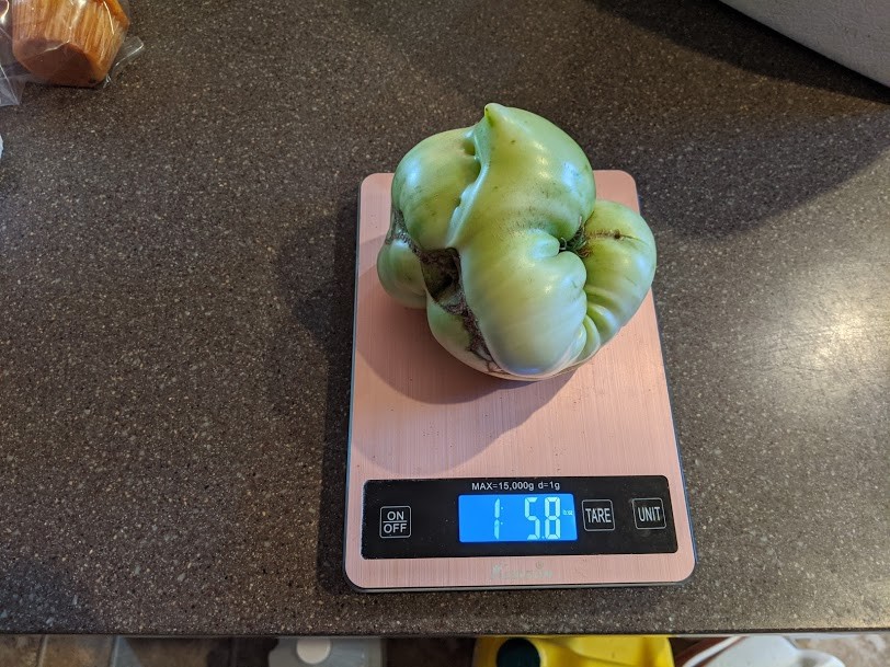 Culled the second tomato from the bucket plant, 1.36 lbs should move me into the top ten of the updated listings that went out today, lol. Only have the keeper left on the plant now.