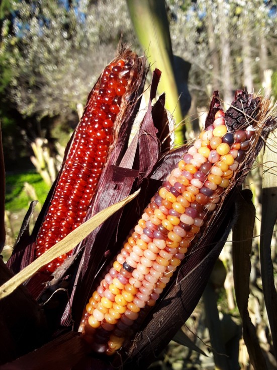 Closer up. These two ears are sisters off the same stalk. Wow! I had no idea this was possible.