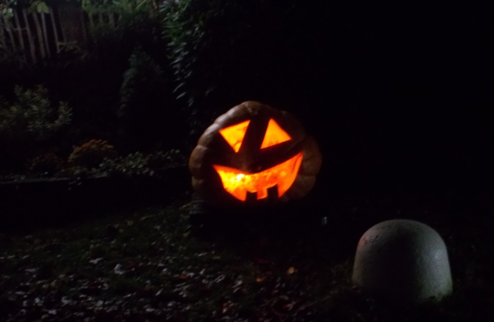 We carved up the 666.5 Gansert and lit it for Halloween night. It didn't even get vandalized (much) this year.