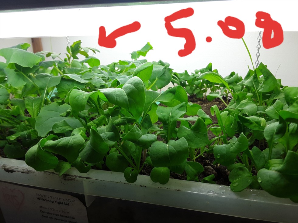 La Rue domingo is keeping up with the spinach and arugula. Frozen garden dirt I have been fiddling with nutrients put azos and tricho drench on. Freezing gets rid of the bugs nicely. So lazy... this is actually the exact same dirt I used last year.