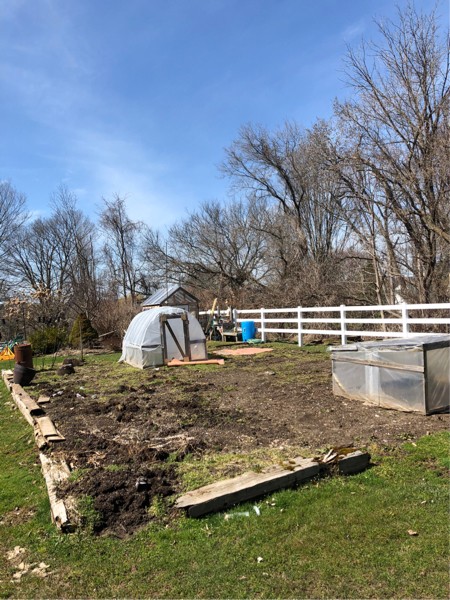 What a mess out here� early April was really nice this year. Got the hoops into the garden to try and keep the planting areas dry.