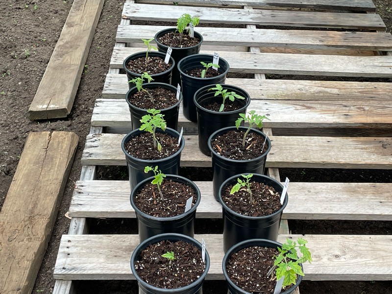 Here are my beat up first round tomatoes. Our grow lights were to bright and set too low for them and I burnt a majority of leaves. They seem to be slowly coming back in the greenhouse.