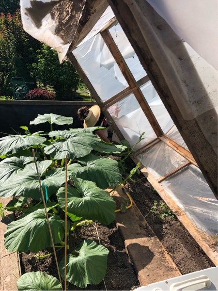 Out of the hoop quick. Despite the 10 day later start I think we�ve caught up to last year in plant size.