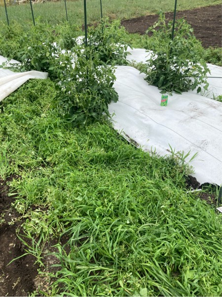 Now that the squash is almost taken care of, it is time to see if I can salvage a tomato season. I thought white weed fabric would be good for keeping temps down. Unfortunately it doesnt block any weeds.
