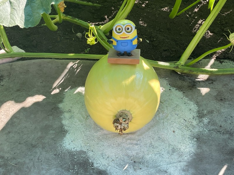 Here is our 1885 Werner pumpkin at day 14 with an OTT of 85 inches. So far growth has been a bit slow but the plant is quickly filling its 800 square foot area which should help. We have also had a couple of 48 degree mornings that do not help.