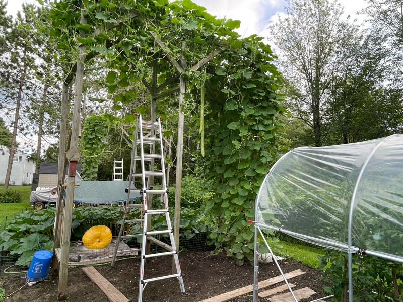 The 152 Yohe is fully pollinated for us with 4 long gourds. We will choose 1 of the last 2 small ones to go to the finish line. Longest one is 82.5 inches tonight.