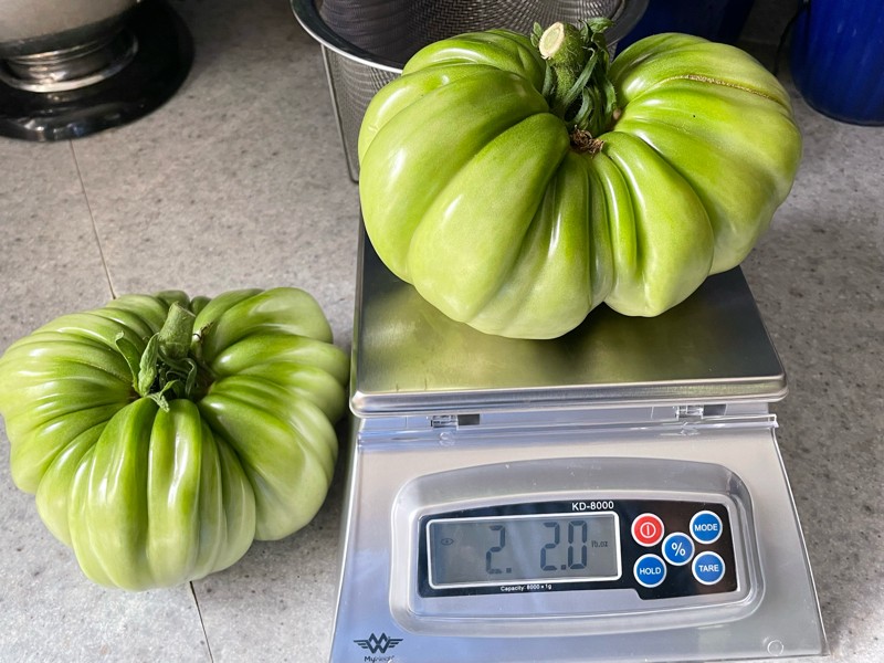 We culled a couple of giant tomatoes this weekend. Both around 2 pounds 2 ounces. We are now down to keepers on our plants.