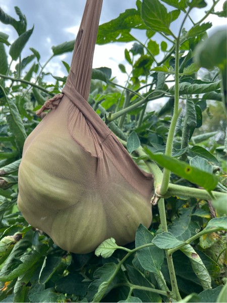 Some early blight on the plant but I think there�s enough to keep her growing until the end. She�s filling in nice.