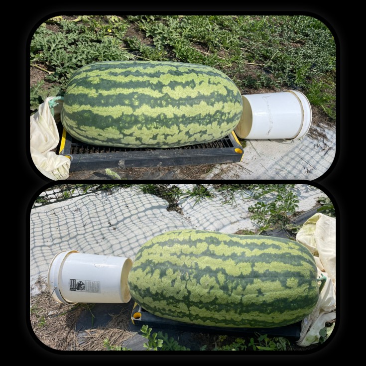 Watermelon updates: 330 Vial is not grafted and has grown well beyond my expectations, yes that�s an actual 5 gallon bucket for size comparison!