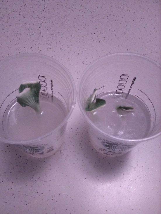 Worthy of note: After that last pic I didn't have any additional AGAR made so I just stuck the seedlings back into the water overnight and went on my way until about 18 hours later; They were fine and just floated around. Now, they are AGAR-avated and we'll see how they do over the next week. SEE NEXT for AGAR deets!