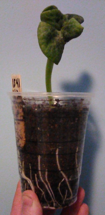 Here is MONSTAHHH - a 1541.5 McMillin that is not only a curly-leafed beast butt also a friendly, two-leafed (with benefits) 'sweety' and has a slightly-doubled stem to it that just begged to be planted to see what is in store for early growth and who knows what - But I will find out! The cots are curled under 99% and the 1st true leaf was not able to be seen enough to determine direction of growth, so, after minor surgery to remove said 'third leaf', I left it alone from there on and I merely pointed it in the direction of stem lean and I'm sure it will be fine - I'll have you know that this seedling is the most vigorous one of the year and I even have another planted and that one is considered 'normal'. Now, about the grower... Plus, check out that root system! yeahhh...