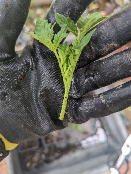 This one is just right and doesn't need any trimming. Get your pot of soil very very wet, make a hole and put the stem in it just to the leaves. Gently but firmly pack the soil around the stem.
