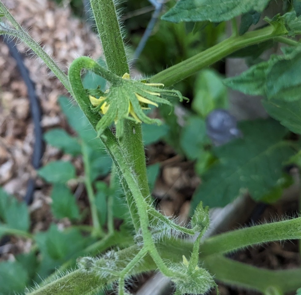 Ohhh. See how the yellow petals are bending back toward the back side of the flower. I thinks is ready!!!!!!! Now to get the procreation devices. (Tomato s�x tools?)