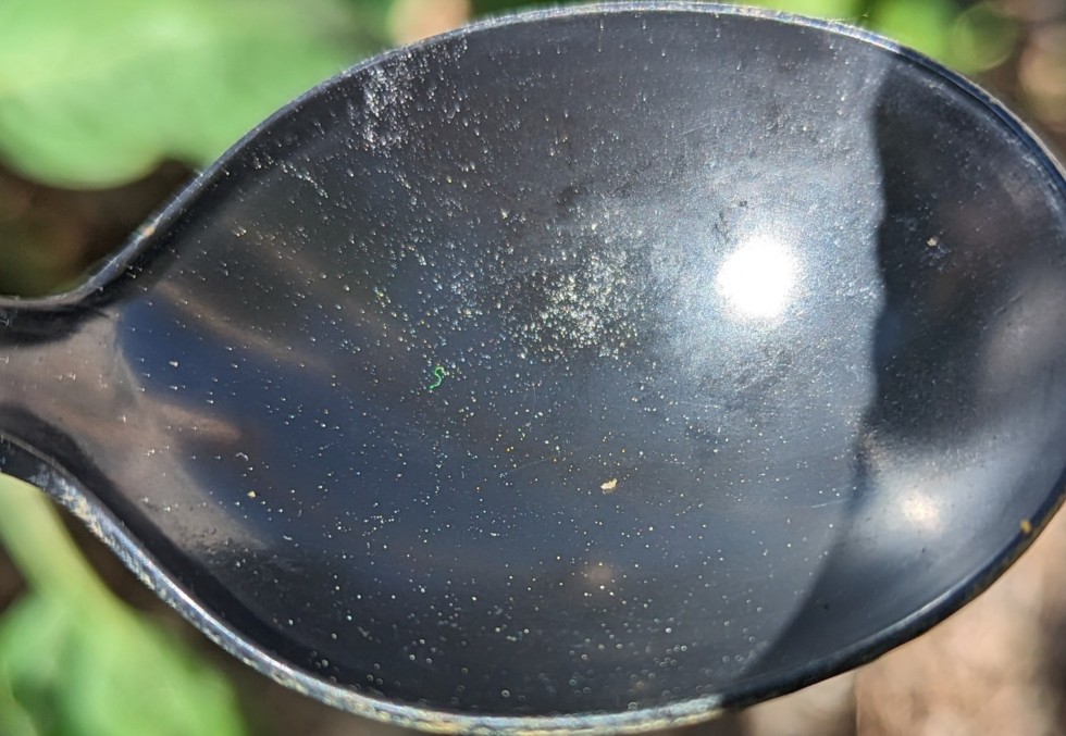 Pollination Day 4 on the monster megabloom 9.65. How many pollen grains can you see on my spoon :)