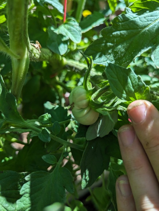 8.41 MacCoy has a tomato on it and the plant is finally starting to grow and flower.