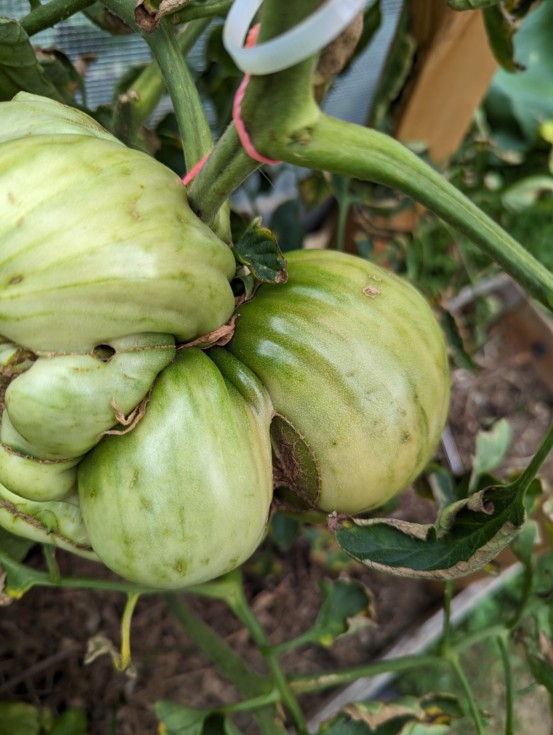 Well......if you look close you can see the right lobe of just starting to blush on the 9.65. unfortunately that is 4 to 5 days early compared to last year. The growth had slowed significantly over the last few days and I wondered if I had over fertilizer it. Nope it's just ripening early. This is very unfortunate as I needed to extra days to get to where I was for sure I had the Colorado state record. Now.......well it will be close. Most likely a personal best and it is still pretty hard so hopefully it will still put on weight for a few days and ripen slowly. Fingers crossed.