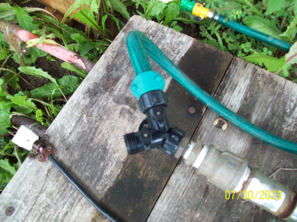 Here is the pump inlet closeup pic - The Y adapter enables me to allow actual air into the system, which is in total about 1000 feet long; I envision one day needing to hear and see the introduced air pocket escaping at whichever sprinkler I'm using, thereby knowing that THAT fertilizer has reached THAT Whizzer. COOL!!! eg