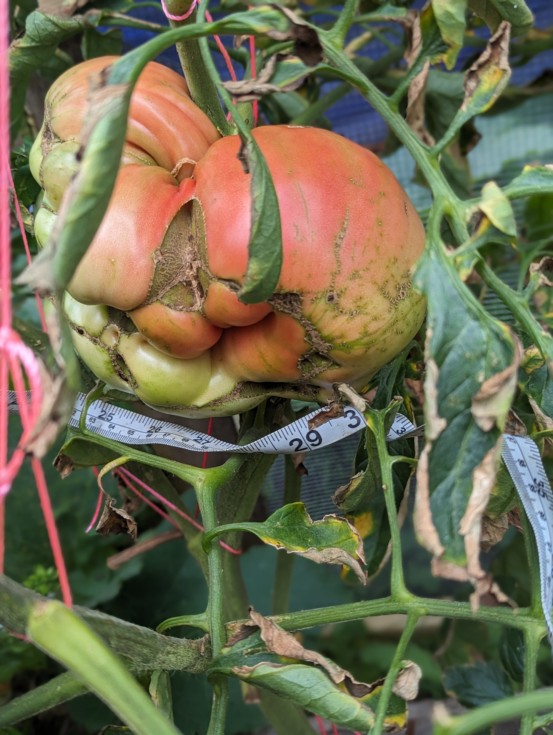 The 9.65 is blushing more each day. Luckily we have had cloudy weather and a bit cooler temps. I really need another 3/4" to feel comfortable having a shot at the state record. I'm hoping I can stretch this out to the weekend. Half of it is still very green, infact the blushing part is not very soft yet so there is a chance.