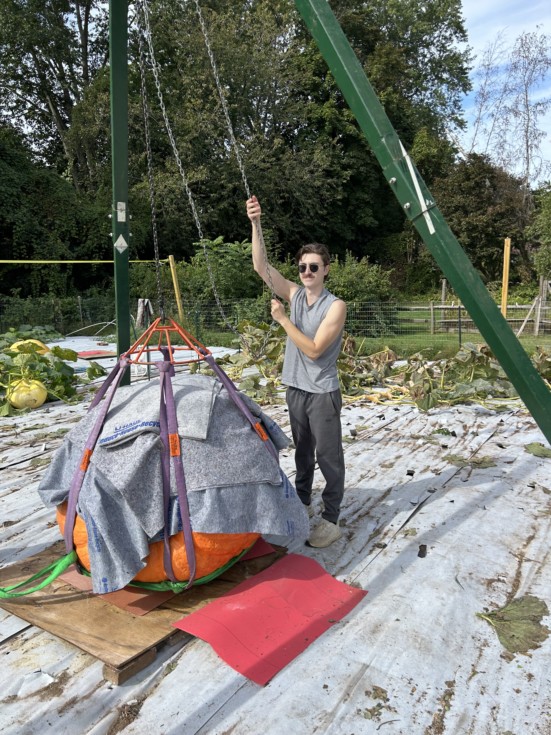 Matt and Jim helped me to lift the pumpkin today. I felt like a real pumpkin grower!