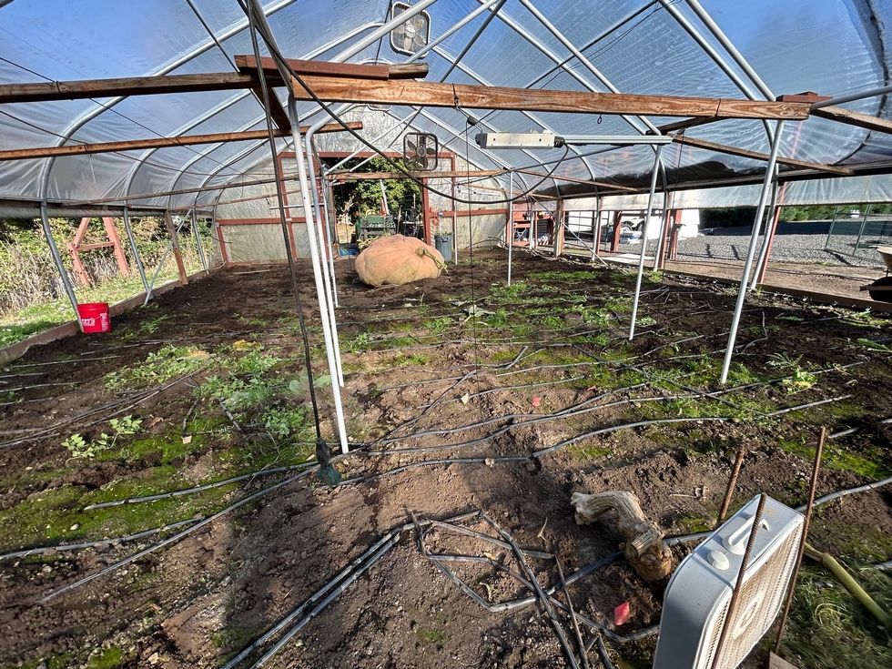 I got a plumber's camera & was able to see that there is a bad spot up underneath her "fold-over" blossom end. She hasn't grown for the past couple weeks, so that is probably when the problem started. This is a pic of her 1200 square foot growing area after I took out her vines. The roots looked fantastic.