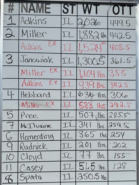 Leader board at Heaps Giant Pumpkin farm in Illinois Saturday September 27th