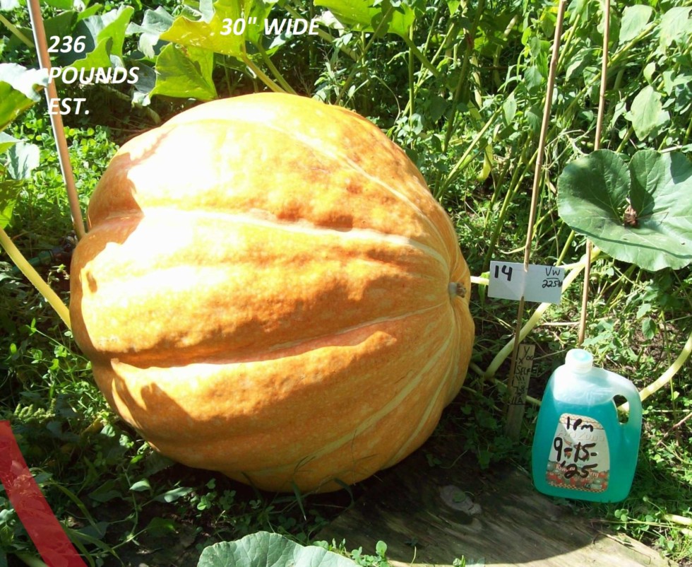 My beloved #14 fruit '25; We can really see the Prizewinner genetics coming through, I suppose, as this is offa my Seed Y seed, lol, that is (2003 Haist X 20 Gerry '10 (PW X 689.5 Sandercock)), AKA 51 Gerry '20; Year before last, this seed grew my biggest fruit for '23 @ 442 pounds. Seems I'm getting an 'every other year' thing going on. Oh, no! Some smart day, I'll wise up and grow an entire annual CROP of the$e bad girl$$$!!! eg