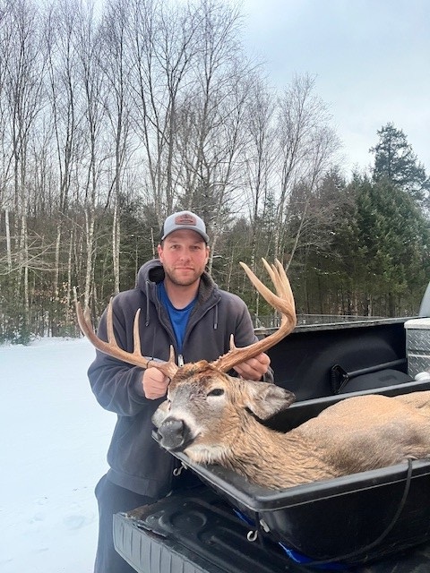 My Nephew Ryan waited until the end of the season to take this nice Adirondack Buck.11 pointer with a 20 1/2" inside spread...nice for this area. Guess I won't be getting one bigger than him this year.