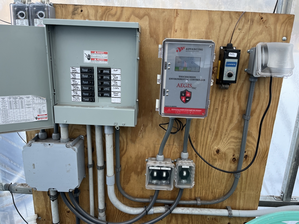 My electrician did a great job. With manual switches for the side curtains and ridgevent, I also have 4 outlets on each side of the greenhouse with a retractable cord reel in the center. Plenty of outlets so I no longer have to run extention cords all over the patch. Now i'll just have to figure out all the automation!