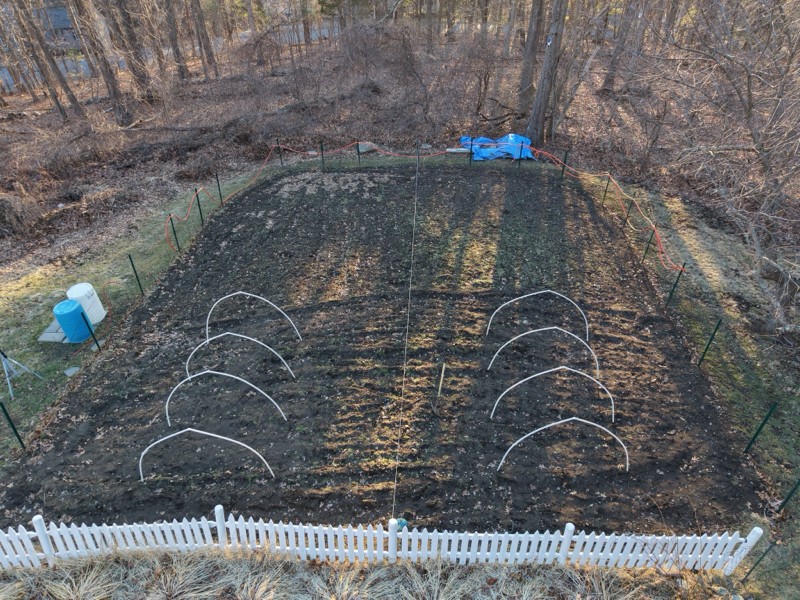 Hoop house frames have been built today! I'm going back to the smaller hoop houses as I feel they are much easier at keeping heat in and the green plastic on the larger hoop houses in the past have too much shade. Back to old school method which I've had a lot of luck with