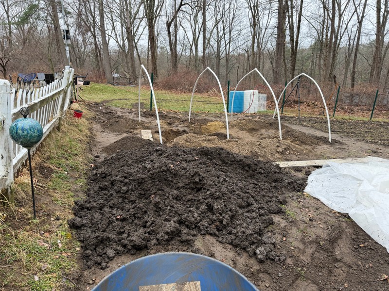 Took me two hours to bring the super loam down into the patch! 2 yards. It was wet from the rain today! I think I got to much as I'm going to mix it in with the patch soil in the hole where the rock was but my dad said he could use some haha