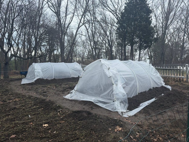 Over 15 hours of patch work over the last 2 days. The hoop houses are up!