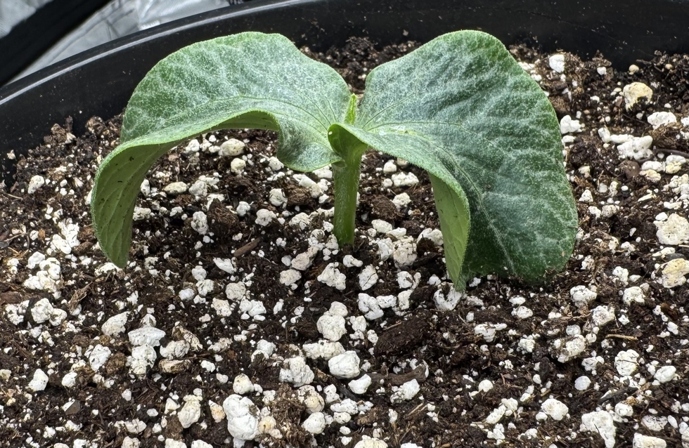 The 2741.5 Haist seedlings are absolutely cruising. I definitely pushed the limits on light intensity the last couple of days, running the Mars Hydro at 8 inches (25 percent) made the cotyledons curl downward ("taco-ing") a bit to hide from the photon overload.