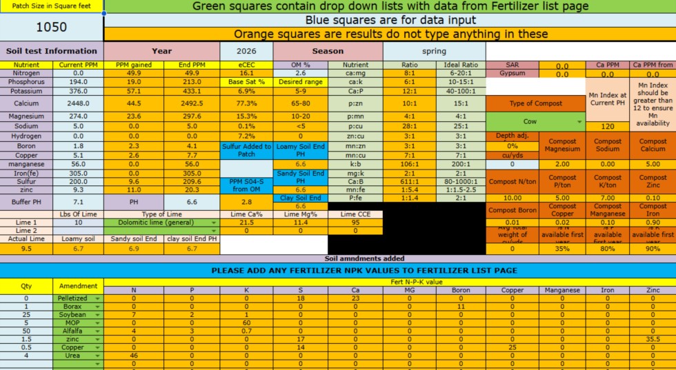 Other non nutritive additions this spring will include several bales of peat moss and some granular Humic Acid.