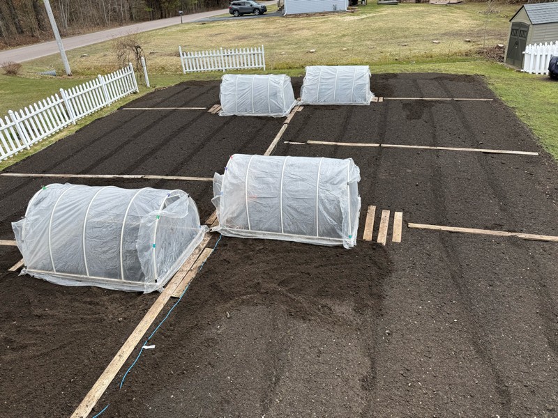 The patch is getting there! Two planting spots will be 600 square feet each, one at 400 square feet and one at 800. The last step for the spring is to get the weed block down but that is for another day!