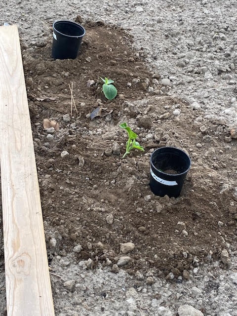Put the plants out today. all of the AG are in and 4 watermelons. soil had a little crust but very nice under, would have tilled the planting spots but proud I didn't, the wind got bad by 10 am and I would not have got the wind fence up before 35 MPH wind. Bugs are active here army worms are marching, may be because it is so dry about 1 month early for Army worm stampede. Normally we get invaded when Wheat crop is starting to mature and rice is 3-5 leaf and taste good to them. No telling what else is on the prowl.Lost a cot off my 2618 Mendi (picture 2618 near 2115 Barron far) bummer.held back 2115 Mendi I think it will be safer for a few days in the pot. One of the other guys may not survive the wind I have that and a 2168.5 Werner that will be better than back ups,I don't like that term, would prefer to call them super insurance. Gave them a light watering in and came back about an hour ago and watered in a dose of Imidacloprid. Wish me Luck for a little less wind and maybe a rain shower, Oh ya,got to Shout out to Christie she ran to the dollar store and bot me some laundry baskets for the melons She is a very supportive wife. the baskets seem to be protecting them well, maybe they get some 4" holes drilled in the top or is it the bottom either may it will let a lot more light in. patch 1 2294.5 Noel ins, 2480 Graham. 2618 Mendi ins. 2115 Barron. 2507 Noel 2102 Noel. 2251 Andrusz 2342 Andrusz. Patch 2 A Pair of 2168.5 Werner and a Pair of 2297 Werner. Best looking plants today 2507 and 2297.
