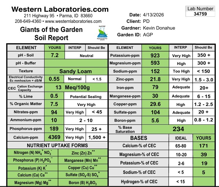 Post amendment soil test is back. I am not sad about it.