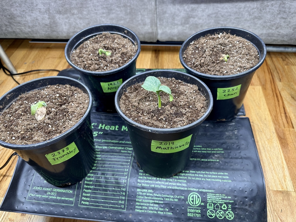 They're starting to come up! I planted them in Sungro Black Gold Seedling Mix with Mykos. The 2019 Mathiowetz seemed like it had a thinner shell, so it germinated really quickly.