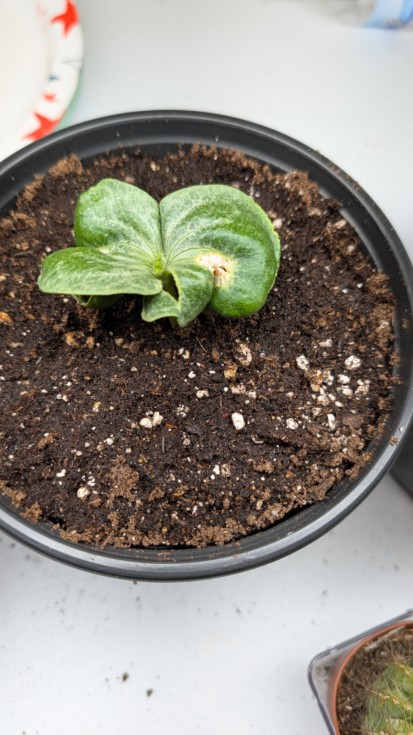 Three of my 6 plants have messed up curly cotyledons and the other 3 look great. I'm not sure what is going on. I realized I did screw up and accidentally used softened water on them which is high in sodium but that doesn't explain why some look good. This 2641 Paton doesn't look great but I think the first leaf is coming out alright.