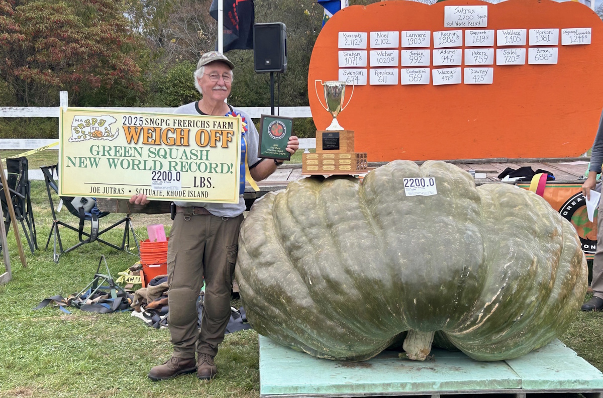 BigPumpkins.com congratulates Joe Jutras on his 2200 pound squash grown in North Scituate, RI.