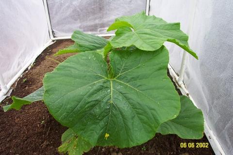 First time grower, picture 10 days old, plant has started vining since then. Weather 50 degrees + rain, winds gusts to 33mph. better weather in two days & cloches come off!!