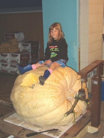 My 5-year old on the pumpkin.