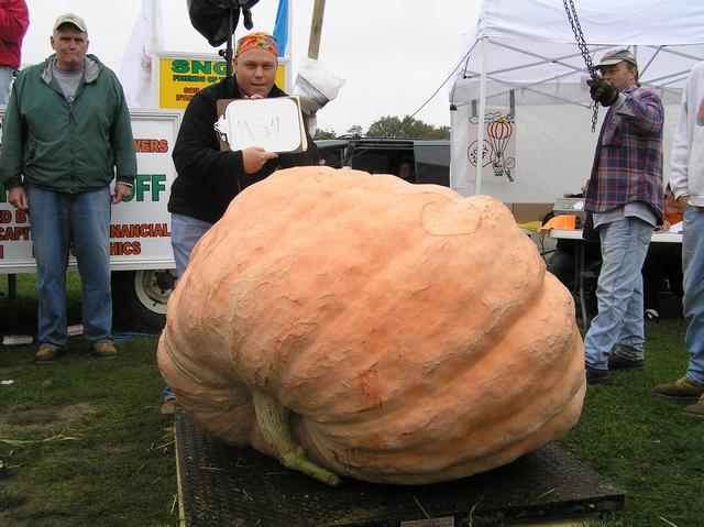 Here is John Nicholas with his 1134.5 pound pumpkin, which earned 6th place at the 2005 Frerichs Farm Weighoff.