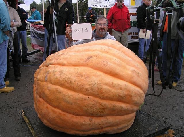 Peter Flores with his 994.5 pound pumpkin at the 2005 Frerichs Farm Weighoff in Rhode Island