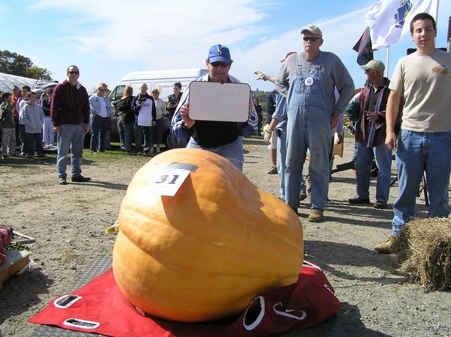 Geoffry Siedal of RI, displays his 388 pound Giant Pumpkin at the Frerich Farm SNGPG weigh-off, in Warren RI on Oct 7, 2006. He plans to carve it for Halloween back home, for everyone to enjoy.