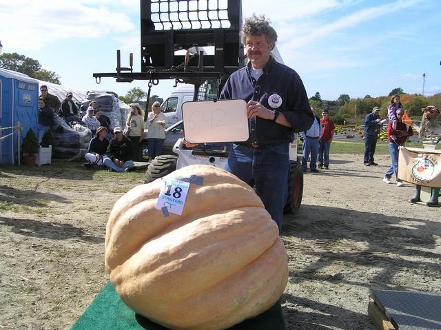 Dan Richardson made the trip from Stamford, CT and displays his 642 pound entry at the Frerich Farms SNGPG Giant Pumpkin weigh-off on a sunny Oct 7th 2006.