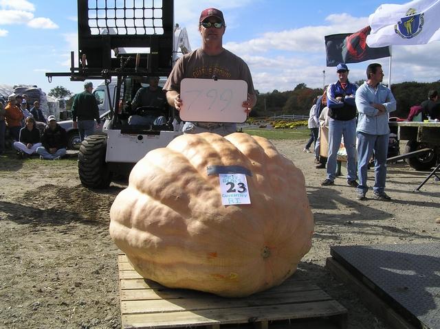 Jeff Blais' "personel best" entry at the 2006 Frerich Farm SNGPG Giant Pumpkin weigh-off is this 799 pound monster.
