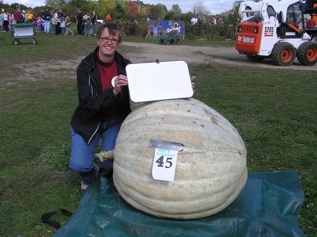 Kate Hibbard (Not related to Hubbard Squash?) grew this 452 pound Giant Squash specimen, and brought to our Frerich Farm SNGPG weigh-off on October 7th.