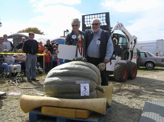 Linda Rodonis of Litchfield, NH, won the Giant Squash weigh-off, at the Frerich Farms SNGPG Weigh-off, with the 529 pound entry, and shared the photo-op moment with Bill Rodonis.