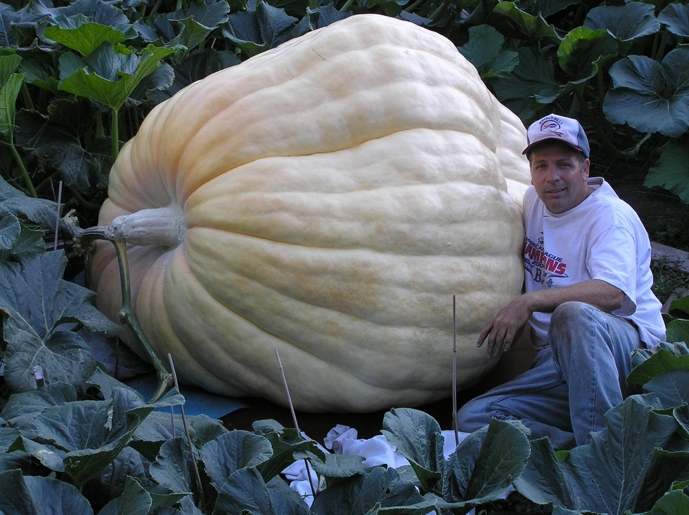 Here is the WR1725Harp x WR1810Stevens Cross grown by Ron Wallace. This is a very rare cross from the last two World Record Pumpkins. It had the genetic strength of the 1725 Harp seed and the massive bulk and thickness of the 1810 Stevens seed. There were only (18) of the 1810 seeds out there. A small pin hole discovered on 8/27 on the top of the pumpkin made it unofficial. A tough loss. Here are some of its weight gains.